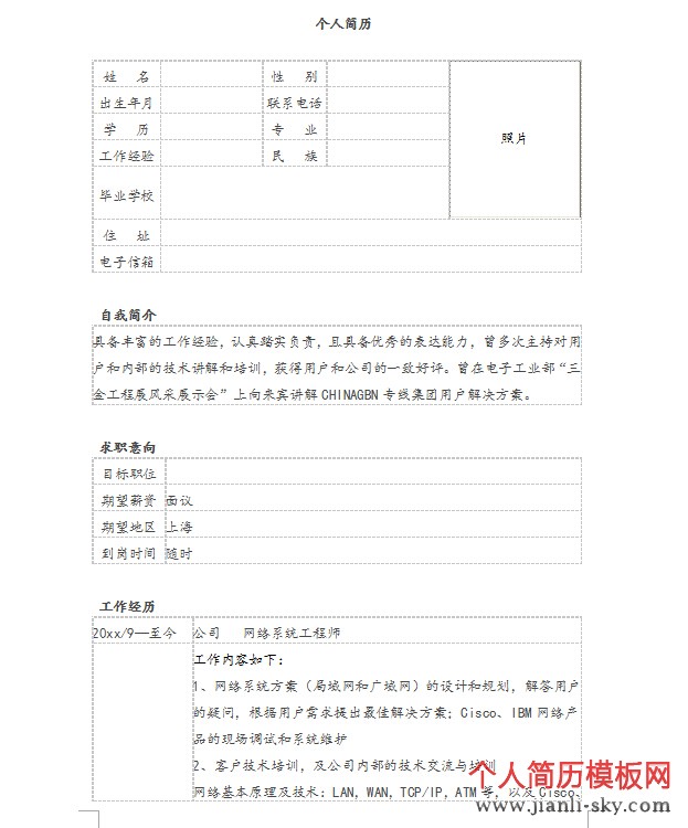 欢迎访问http://www.jianli-sky.com/,下面为您提供简历模板的样式截图,仅供参考,具体效果你可以下载查看使用。祝您职场顺利,早日找到称心如意的工作!