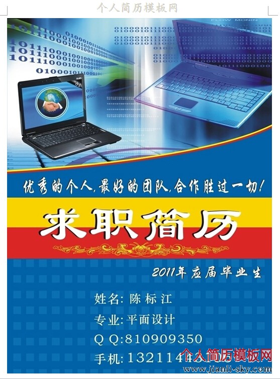 附件下载1 (点击名称下载): 2011届毕业生平面设计简历封面