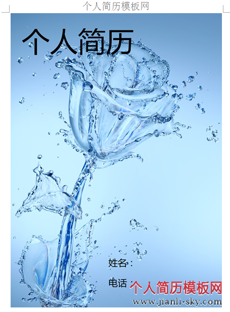 附件下载1 (点击名称下载): 水漾蓝色玫瑰个人简历封面