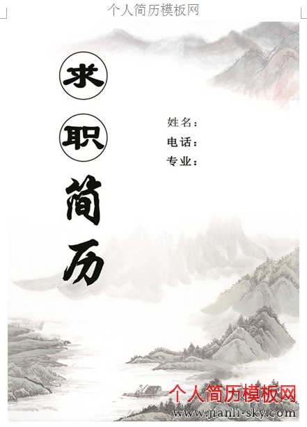 附件下载1 (点击名称下载): 舒适悠远的个人简历封面
