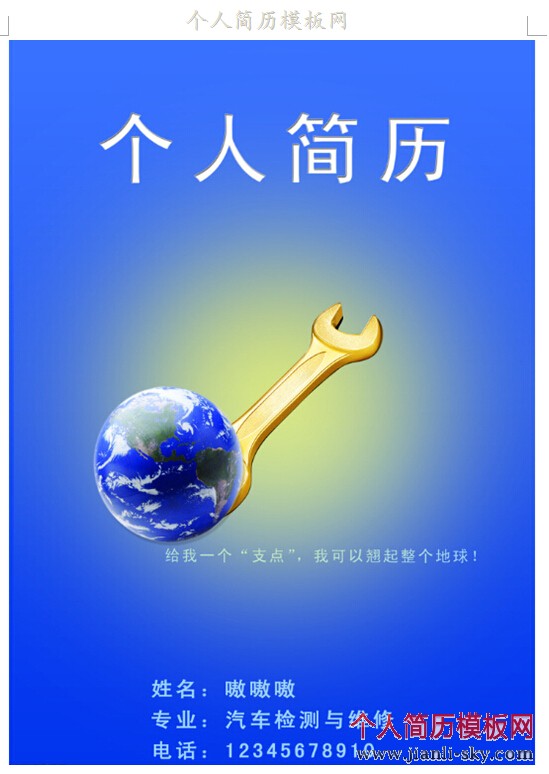 附件下载1 (点击名称下载): 汽车检测与维修专业简历封面