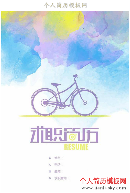 附件下载1 (点击名称下载): 彩色水墨的单车个人简历封面